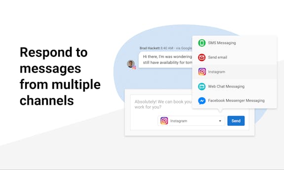 Collaborate with your team on communicating with customers from a unified Inbox for SMS, Web Chat, Facebook, Instagram and Google Messages