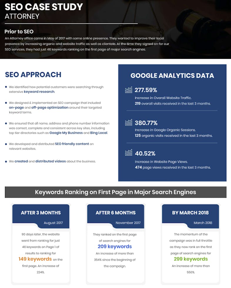 We have powered thousands of small business SEO campaigns to first page results. With our best in class technology and dedicated staff, we allow companies to focus on running and building their businesses.Â