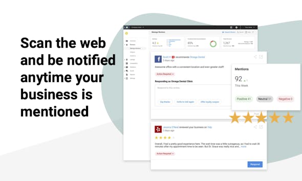 Manage your online reputation from one place: Compile reviews from dozens of sites so you can easily see what’s being said about your business online. Plus, use competitive benchmarking to see how you stack up to the competition